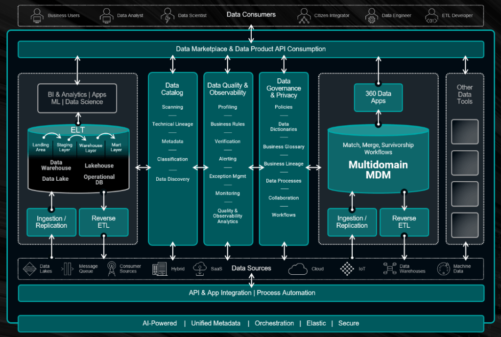 - Data Management: Architectures centered around data lakes or data warehouses help manage large-scale data (Big Data) for analysis and decision-making.